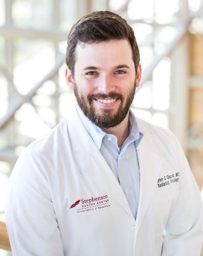 “The benefit of brachytherapy is that it allows us to be very precise with the radiation dose,” said Stephenson Cancer Center neurosurgeon Chad Glenn, M.D., who performed the surgery and implanted the radiation seeds. “Although traditional radiation therapy is accurate and targeted, it can still spread to adjacent brain tissues or the scalp. Brachytherapy allows us to give a therapeutic dose of radiation but minimize the spread.”