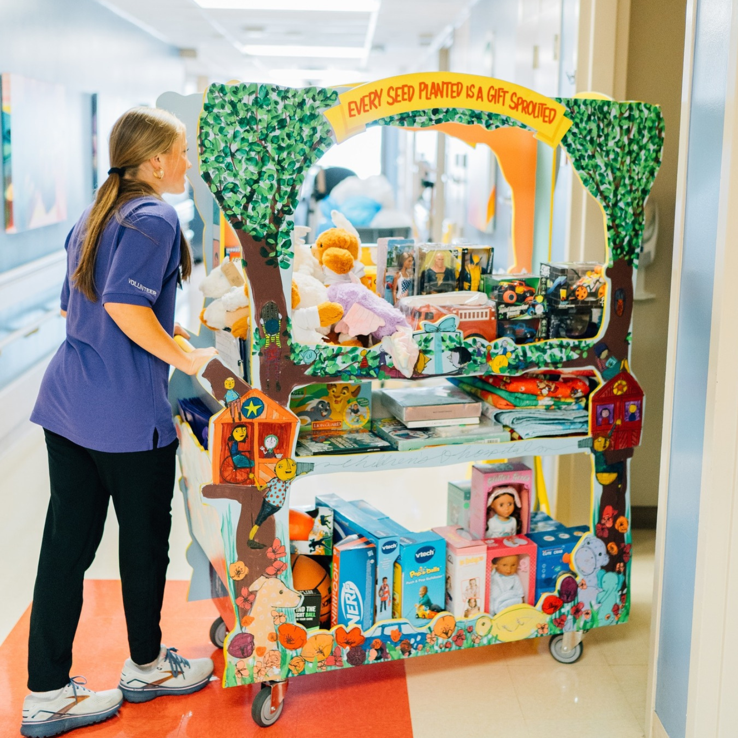 Community donations help our volunteers provide meaningful programs, like the Toy Cart, which delivers more than 7,500 toys and gifts to kids and families all year long.