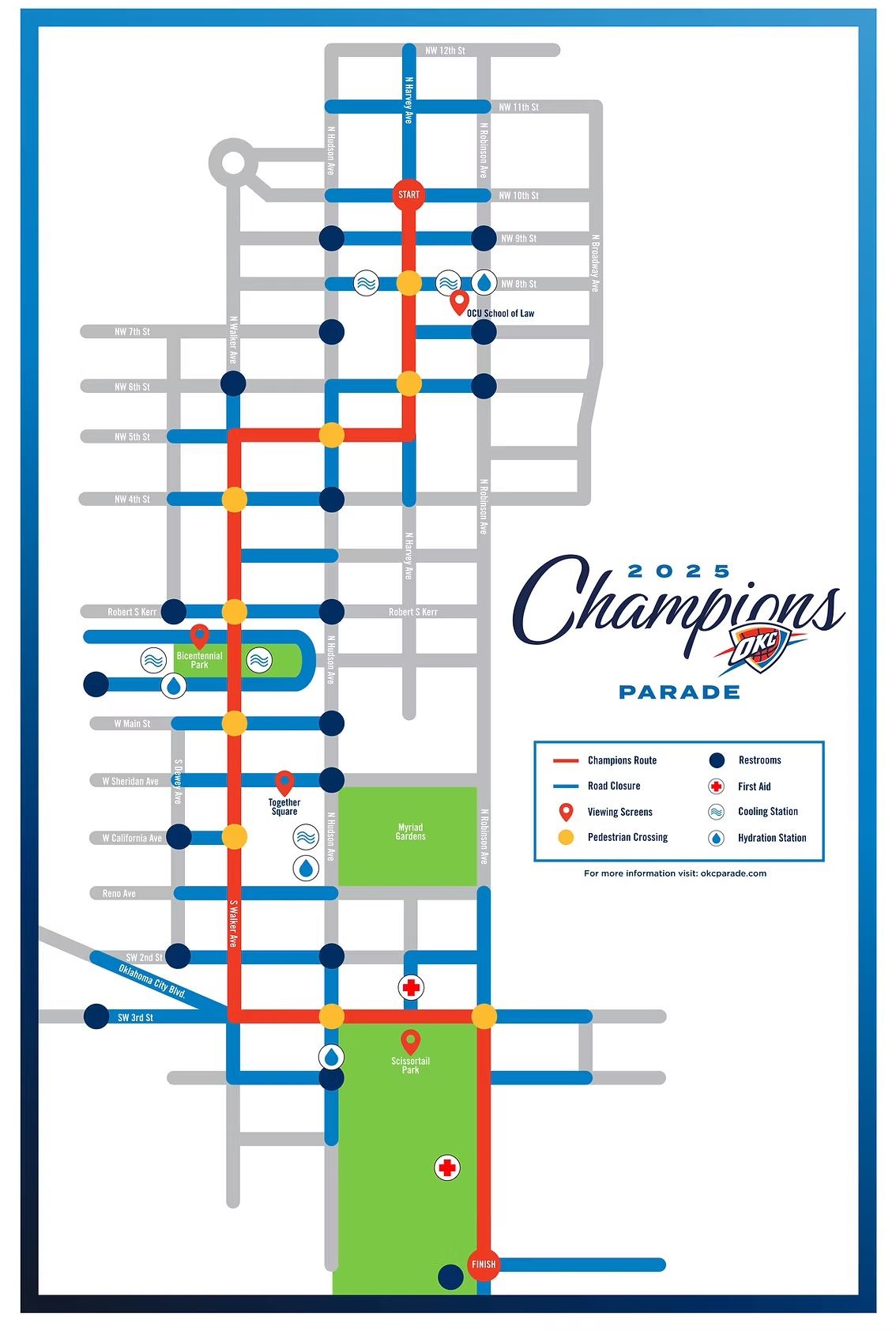 The parade is scheduled to begin at 10:30 a.m. and conclude around noon. Expect road closures and heavy traffic in and around downtown Oklahoma City throughout the day.