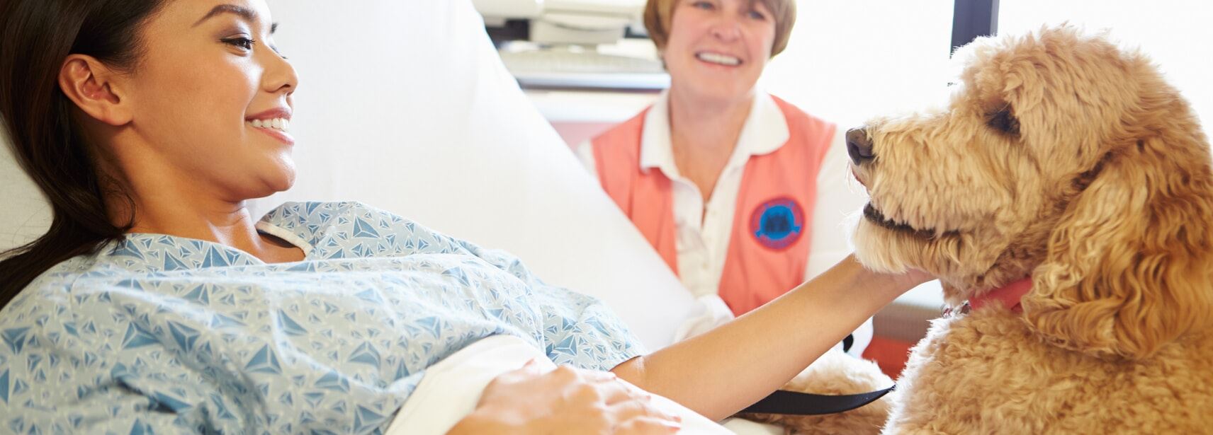 The Pawsitively OUr Pals Volunteer Program provides a wide range of services. Dogs and their owners offer heartwarming and supportive experiences to patients, visitors and staff members. Read about our Pet Therapy Programs at OU Health.