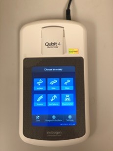 The Qubit 4 Fluorometer accurately measures DNA, RNA, and protein quantity, as well as RNA integrity and quality, using the sensitive Qubit assays. For all Qubit assays, the concentration or quality of the target molecule in the sample is reported by a fluorescent dye that emits a signal only when bound to the target, which minimizes the effects of contaminants on the result.